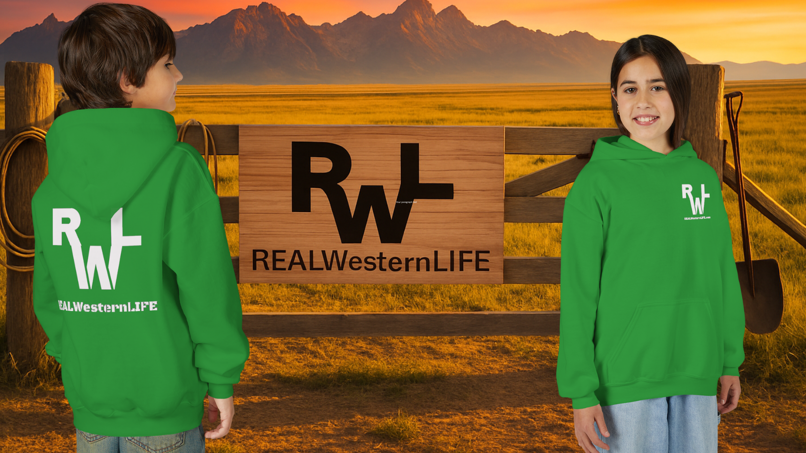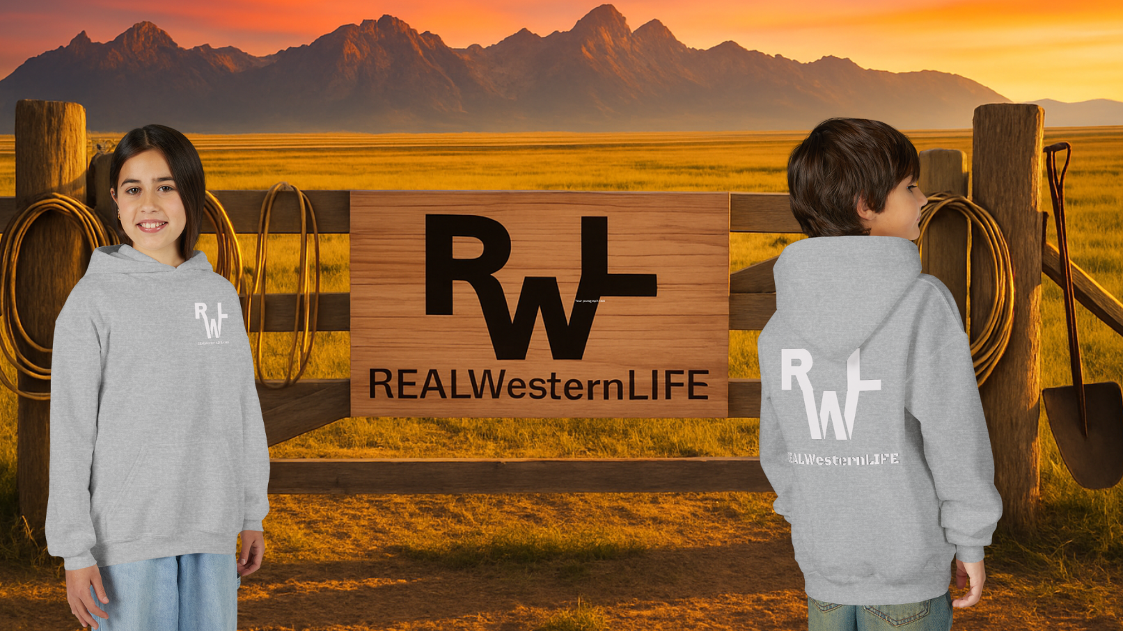 Real Western Life Kids Custom Brand sweatshirt, perfect for young cowboys and cowgirls. This cozy hoodie provides warmth and style for children who enjoy rodeos, western-themed events, and country living.