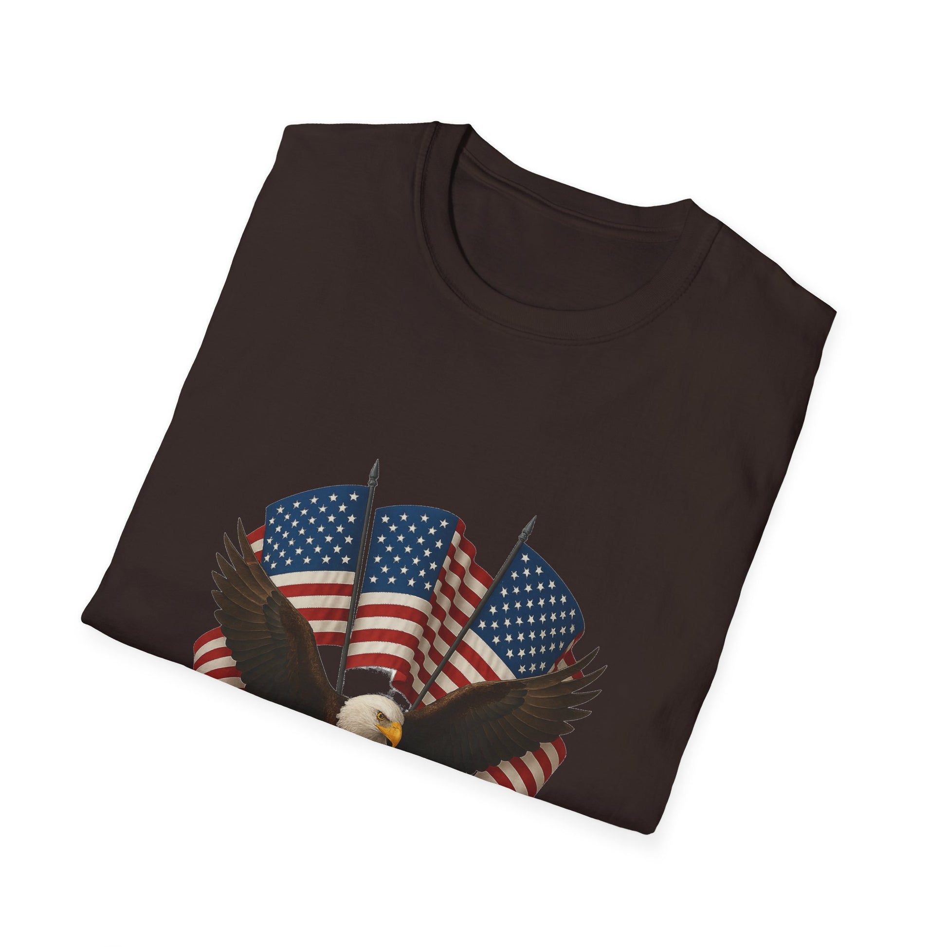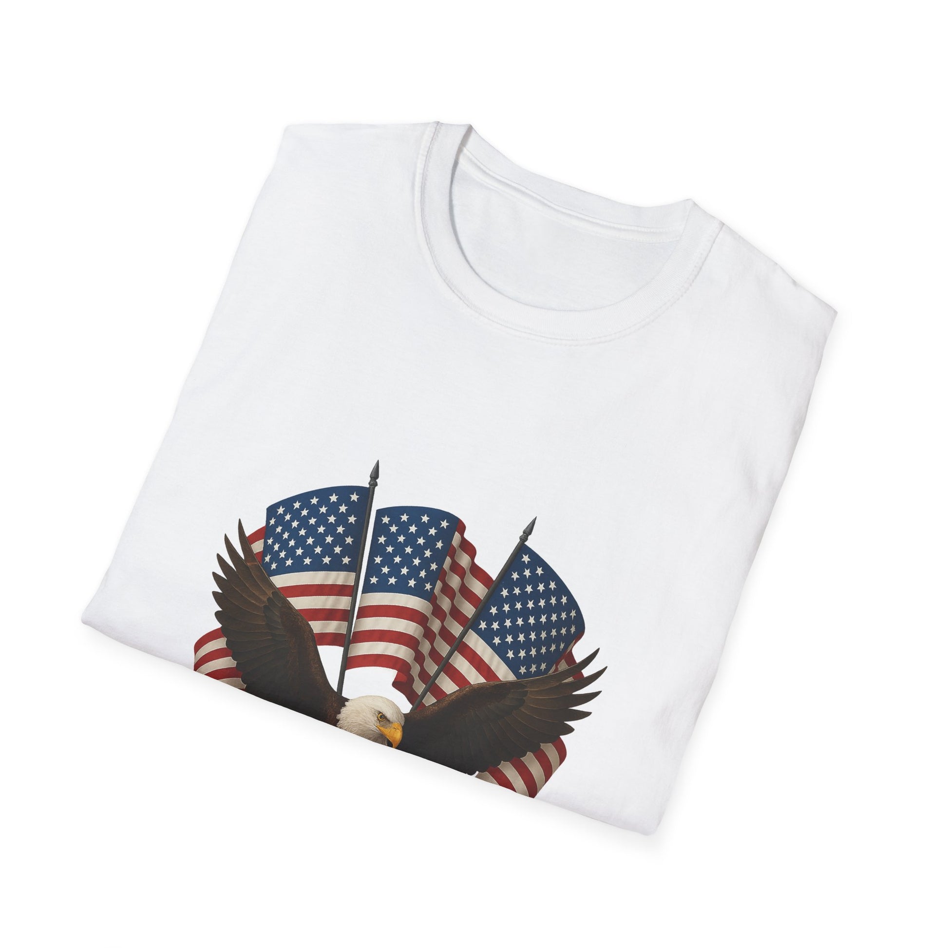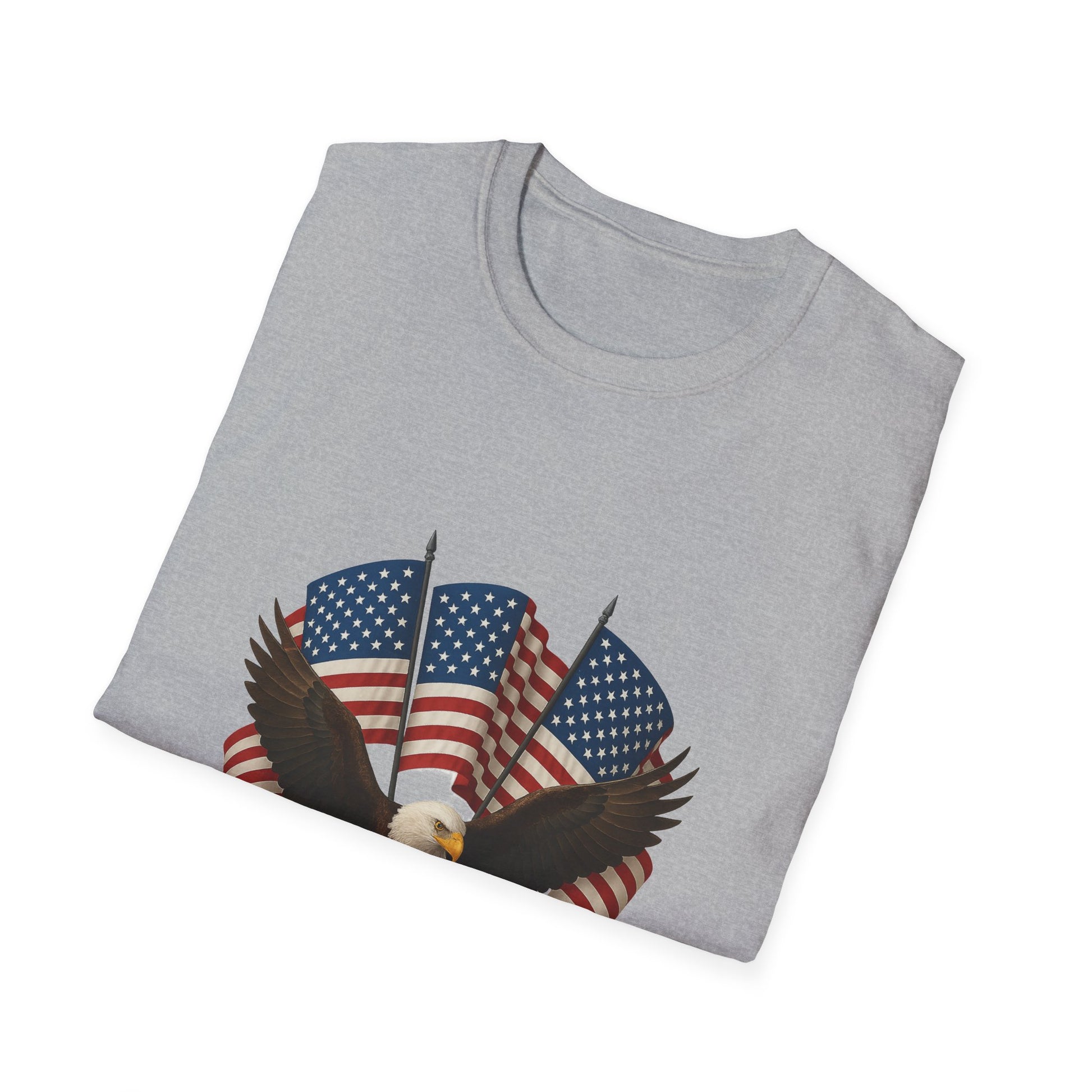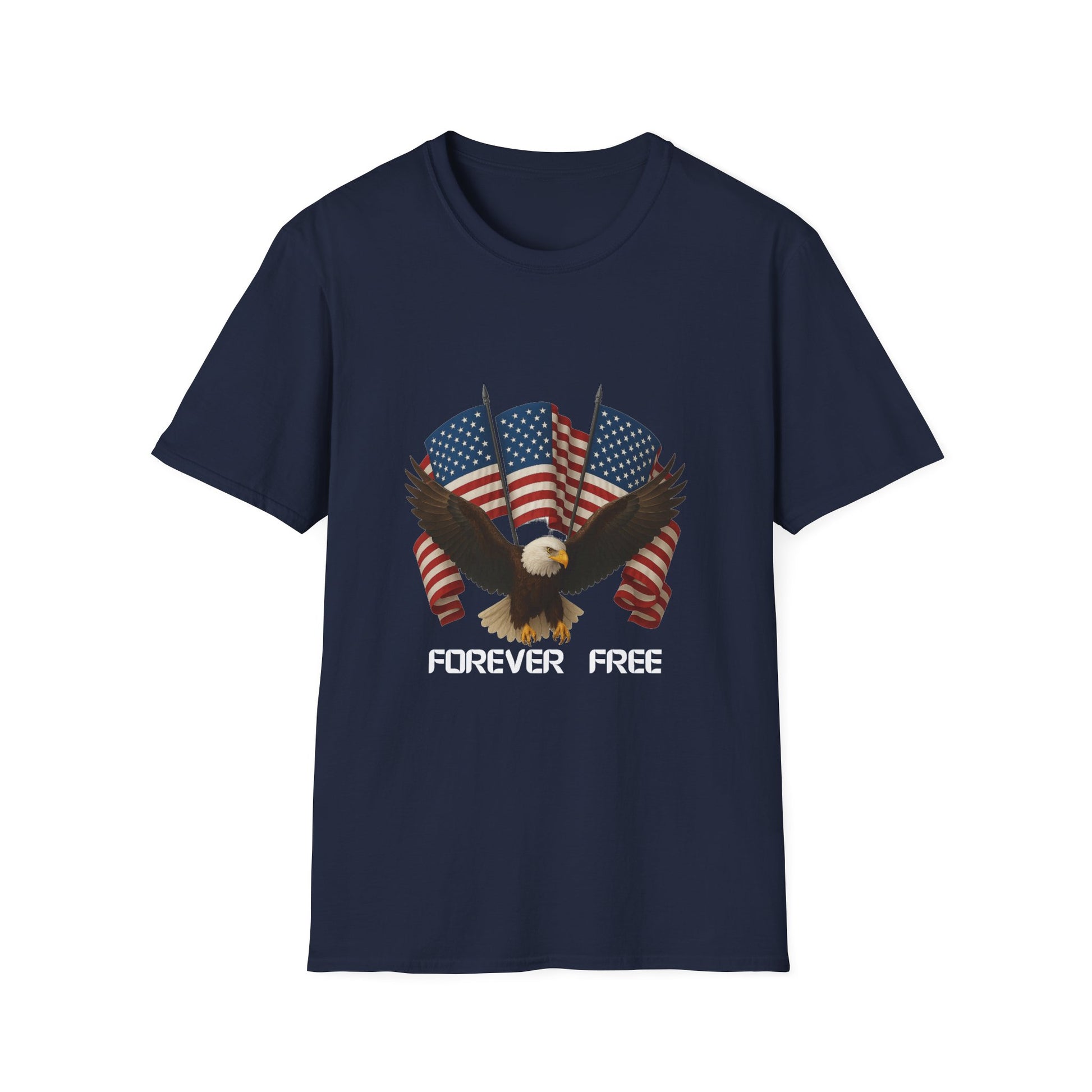 Show your American pride with our bold and timeless Forever Free design. Featuring a powerful bald eagle in mid-flight, wings spread wide before three gracefully waving American flags, this artwork captures the spirit of freedom and strength. The rich red, white, and blue hues paired with the bold “Forever Free” lettering make this a standout design for any patriot. Perfect for apparel, wall art, or accessories, it’s a tribute to liberty that never fades.
