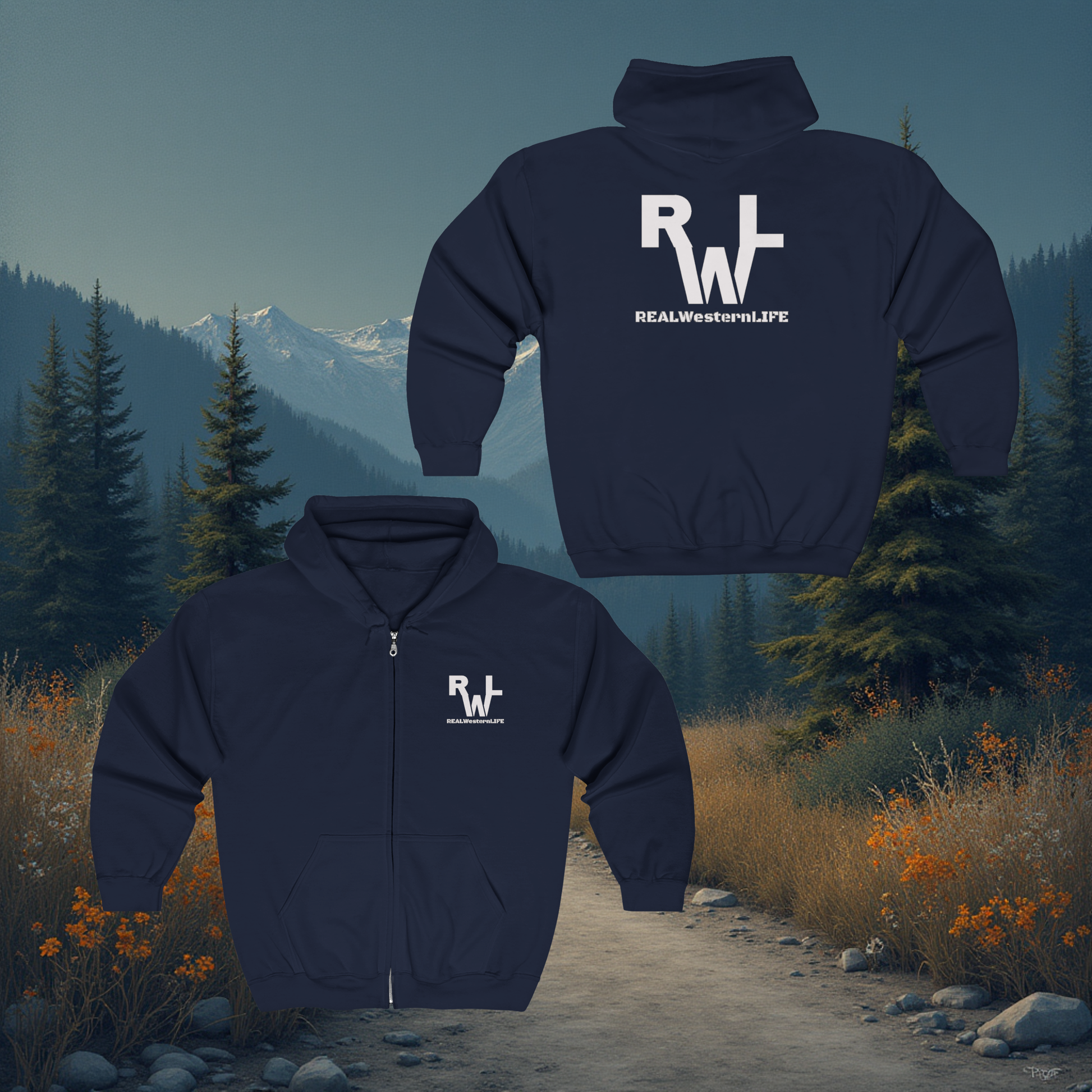 Full‑Zip Hooded Sweatshirt - Customizable with your brand/ranch name or wear the Real Western Life (RWL) Branding!