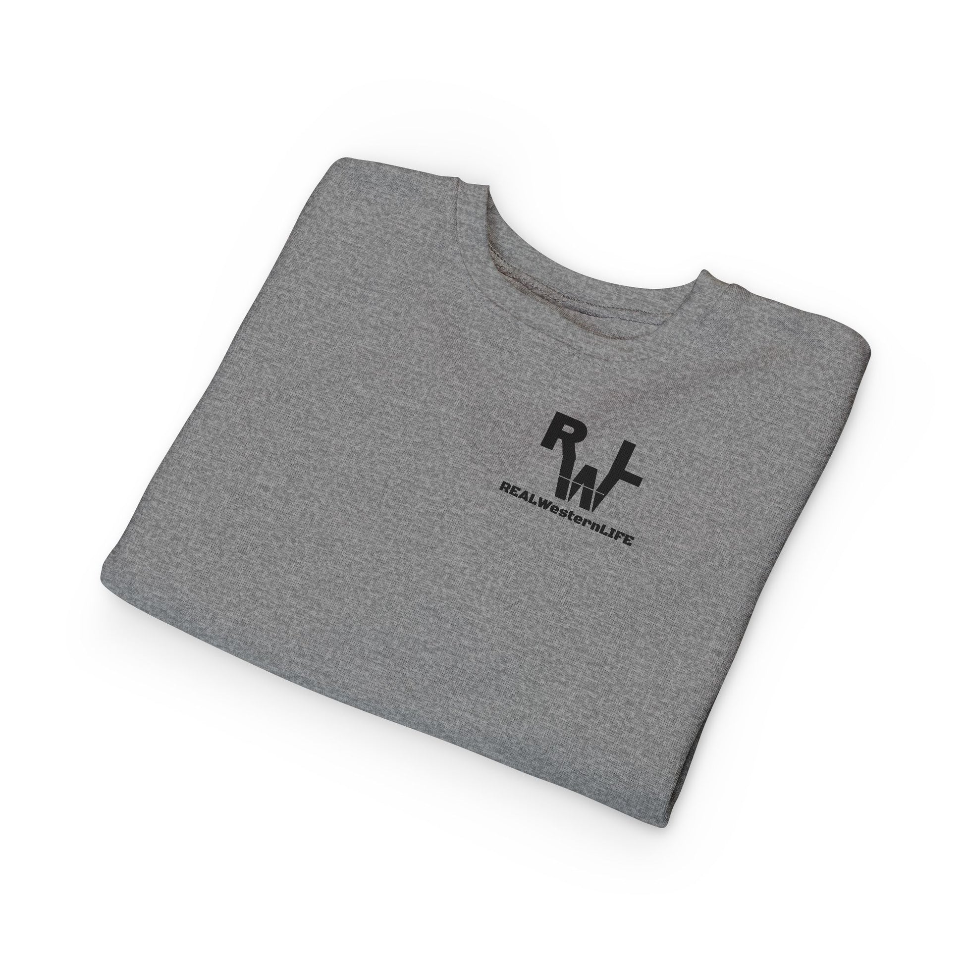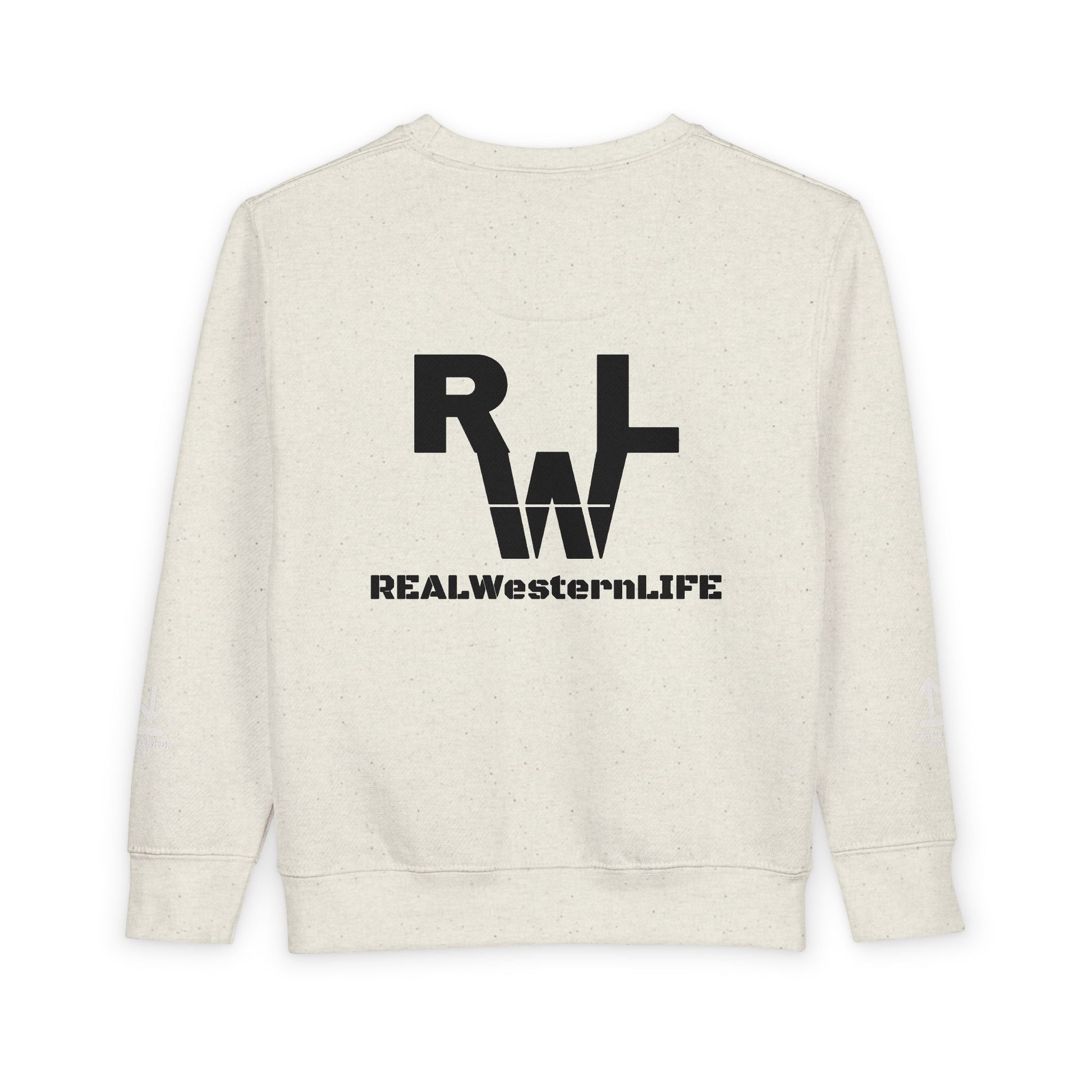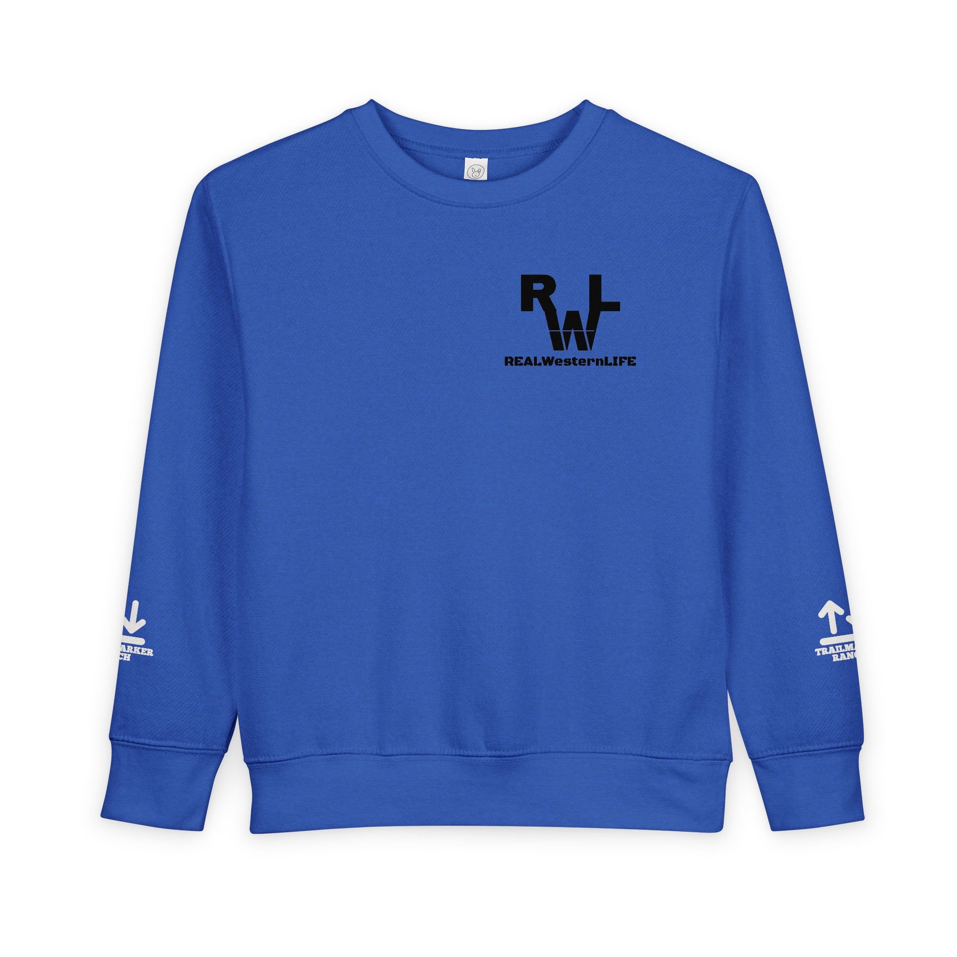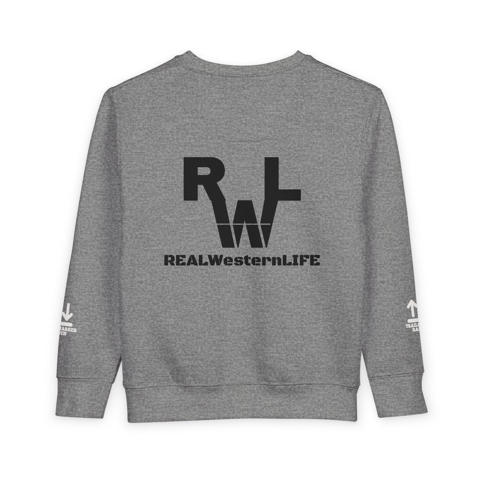 This Real Western Life Ranch brand Toddler Sweatshirt exudes a cozy and rustic vibe, perfect for little ones who love the outdoors. Ideal for young children to wear during family gatherings, holidays, or outdoor adventures. This cozy and durable toddler sweatshirt is made from a soft 60% cotton, 40% polyester fleece blend, ensuring warmth and comfort for little ones. Designed with meticulous attention to detail, it features cover-stitched ribbed collar, shoulders, and armholes, along with sturdy ribbed cuffs and waistband for added durability. CPSIA compliant, it includes a tracking label in the side seam for safety. The white option is sewn with 100% cotton thread, making it gentle against the skin. Perfect for keeping toddlers snug and stylish.