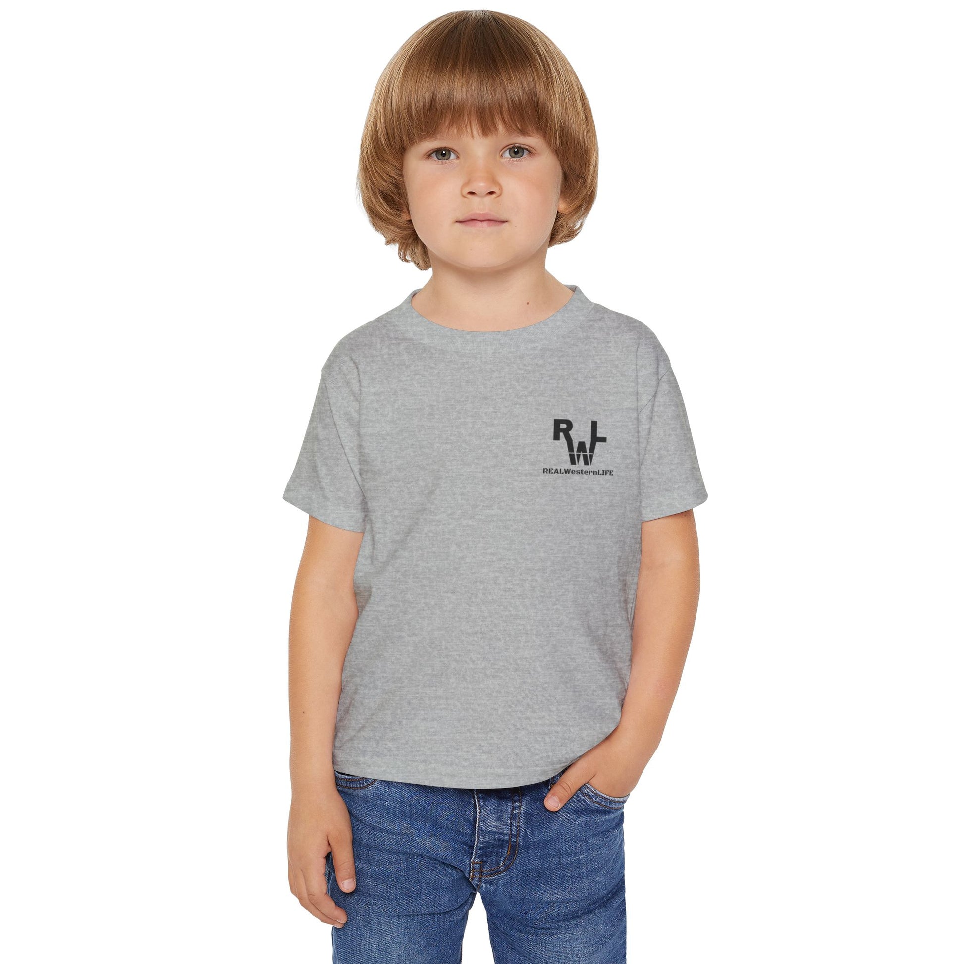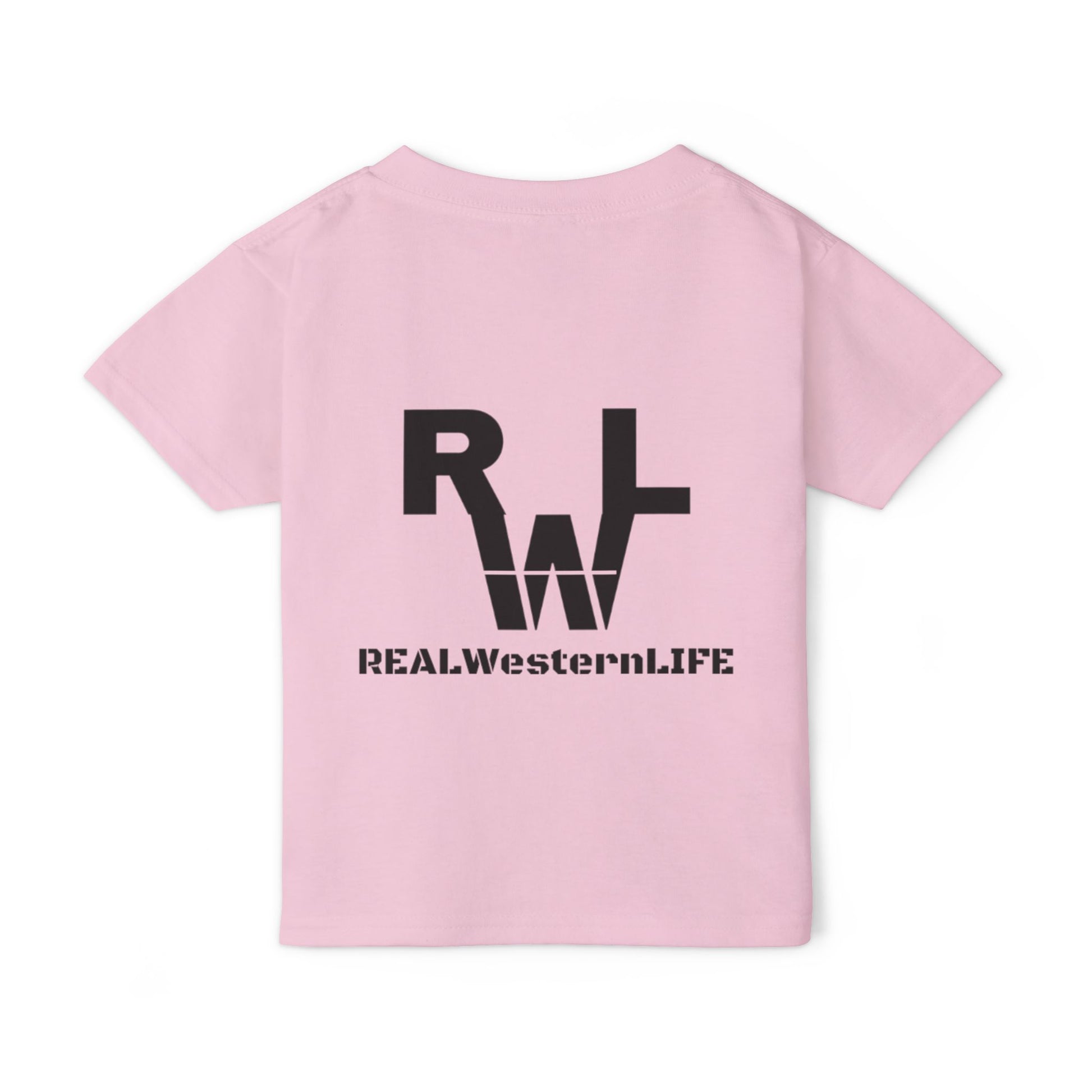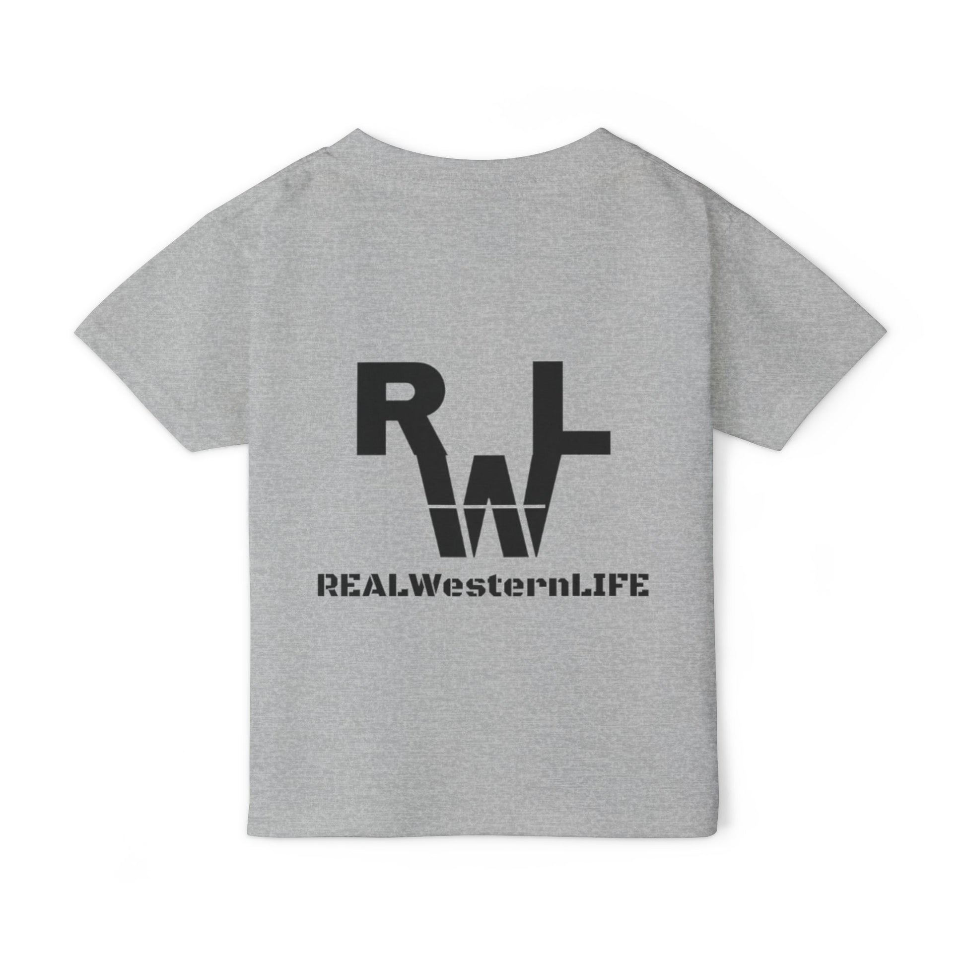 Real Western Life Ranch Kids Toddler T-shirt brings a touch of the Wild West to your little one's wardrobe. Perfect for young cowboys and cowgirls, this tee is ideal for playtime on the ranch or any Western-themed celebration.